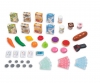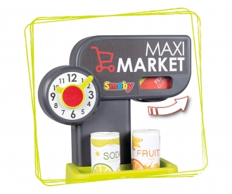 De nombreux accessoires sont inclus pour agrémenter les fonctions de jeu : 8 boites factices (céréales, pâtes, cookies, lait), 2 canettes, 2 yaourts, 6 fruits et légumes, 2 macarons, 2 tartelettes, 1 pain, 1 lecteur de code-barres électronique avec son et lumière, 4 tickets de caisse, 1 carte de crédit, 9 pièces, 12 billets et 1 chariot.