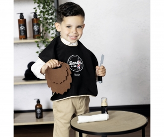 Composé de 5 accessoires réalistes, barbe, cape en tissus, coupe chou, flacon de mousse à raser factice et serviette, ce set permettra à l'enfant de tailler la barbe comme pour de vrai ou presque !